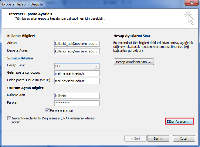 2- Hesap Ayarları bölümünden nevsehir.edu.tr uzantılı mail hesabınızın üzerine çift tıklayın.