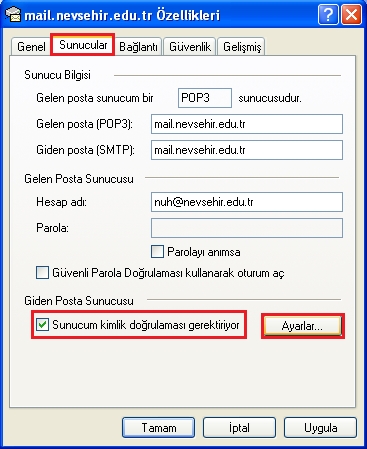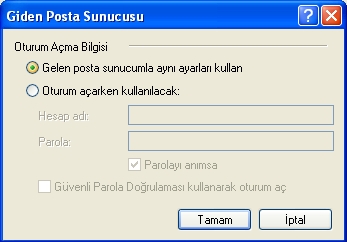 4- Gelen form ekranının aşağıdaki gibi olduğundan emin olun ve Tamam diyerek ayarlarınızı kaydedin. Diğer form ekranlarını da kapatın. Bu ayarlardan sonra sorunsuz bir şekilde mail gönderebilirsiniz.