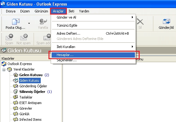 1- Araçlar Sekmesinden Hesaplar'a tıklayın.