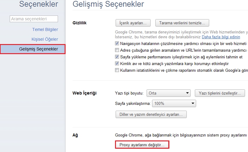 Google Chrome İçin Proxy Ayarları